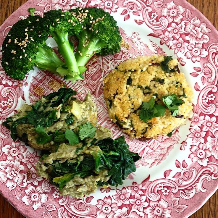 -1Dit is een heerlijk en makkelijk recept om te eten in plaats van aardappels met vlees. De mungbonen puree doet denken aan aardappelpurree maar is veel voedzamer en een goede voor op een vegetarisch menu aangezien er veel eiwitten inzitten. En, goed voor de reiniging van je darmen, ze zitten ook boordevol vezels, dus zeker een goede voor een Detox. Deze puree bevat ook een aantal kruiden, bekend vanuit de Ayurveda vanwege hun reinigende werking op het lichaam. Indien je met mungbonen wilt koken moet je ze idealiter een nacht van te voren laten weken zodat ze alvast veel vocht opnemen en er zo min mogelijk voedingstoffen verloren gaan tijdens het gaar koken. Bij deze heerlijke puree hebben we een gierstburger bedacht en wat extra broccoli gestoomd.