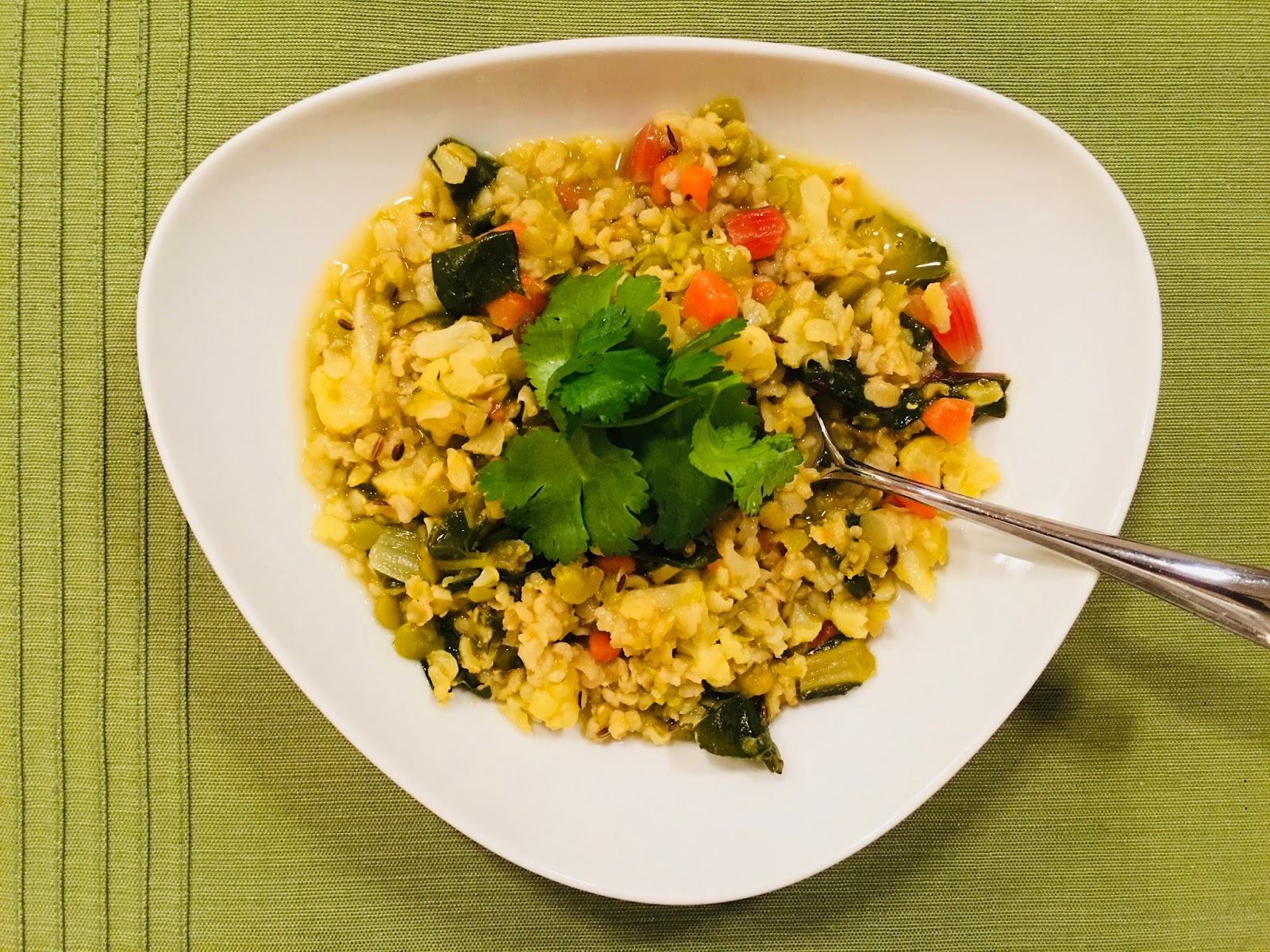 Kitchari is een specifieke mix van rijst, dhal of mungbonen en specerijen met ghee die het spijsverteringsstelsel voedt en de dosha kalmeert die mogelijk uit balans is. De belangrijkste maaltijd is de lunch. Er zijn kitchari’s voor elk van de dosha’s. Eet één of twee dagen alleen kitchari, dus drie keer per dag en ervaar het effect.Lees hier een vegan lunch suggestie voor de doshas.